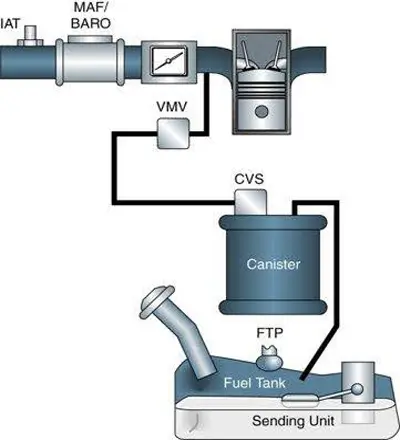 با افزایش دما یا تبخیر سوخت، بخارات بنزین تولید میشوند. این بخارات از طریق شلنگها وارد کنیستر شده و توسط زغال فعال جذب میگردند.